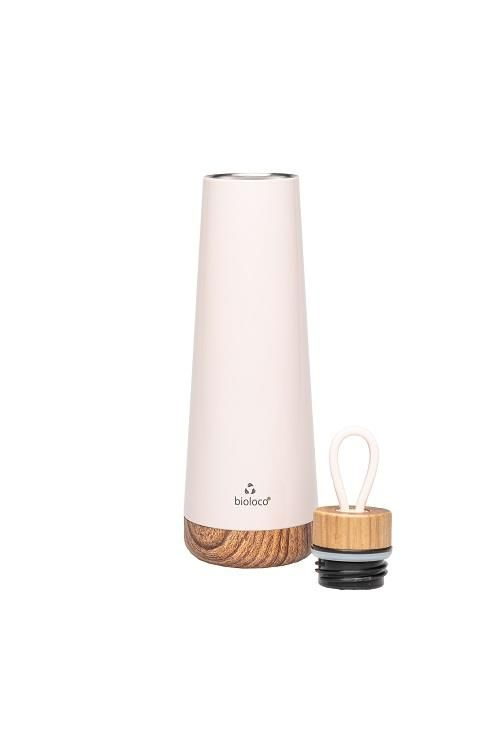 Uit de collectie van Chic.mic, deze dubbelwandige RVS thermosfles met stijlvolle bamboe houten dop met siliconen draagring. Deze fles houdt jouw drankje ± 18 uur koel of ± 12 uur warm*. Ideaal om warme of koude dranken mee te nemen naar werk, school of tijdens een dagje uit! De stevige draaidop sluit de fles goed af. De opening is mooi glad, zodat je ook rechtstreeks uit de fles kunt drinken. De schenkopening heeft een diameter van ongeveer 4 cm, waardoor je er ook een theezakje in kunt hangen.