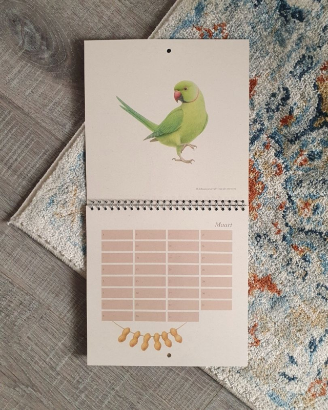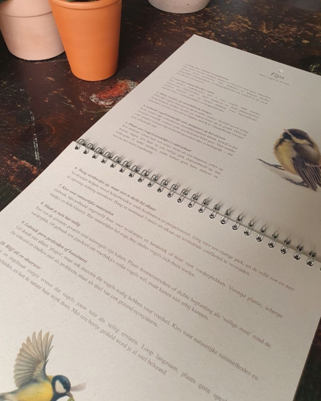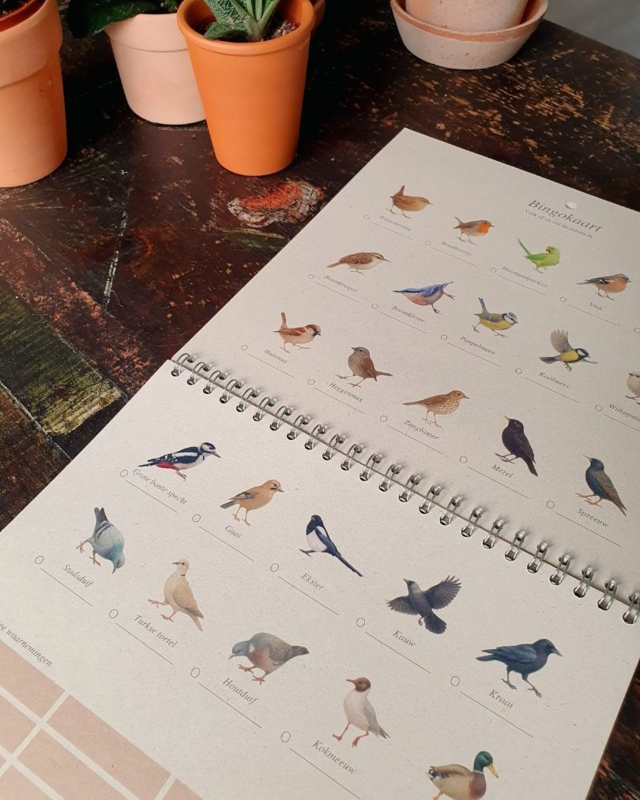 Elke maand is geïllustreerd met een prachtige tuinvogel. Maar dat is niet alles! Deze kalender bevat ook tips hoe je (meer) vogels naar je tuin kunt lokken, een "bingokaart" waarop je kunt afvinken welke vogels je hebt gespot, een "maak je eigen vetkopje" DIY én een mini poster.