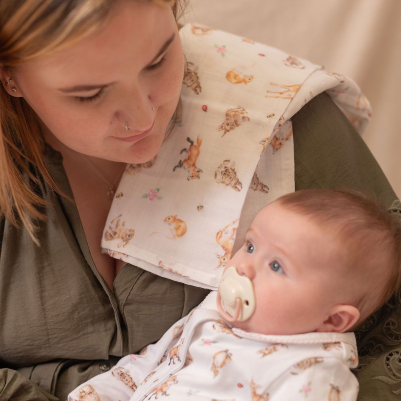 Uit de collectie van het Britse merk Wrendale designs: deze cadeauset met daarin twee hydrofieldoeken. Een met een all-over patroon en een met in elke hoek een ander bosdiertje. De doeken zijn van 100% biologisch katoen. Het geheel wordt geleverd in een prachtig cadeaudoosje.