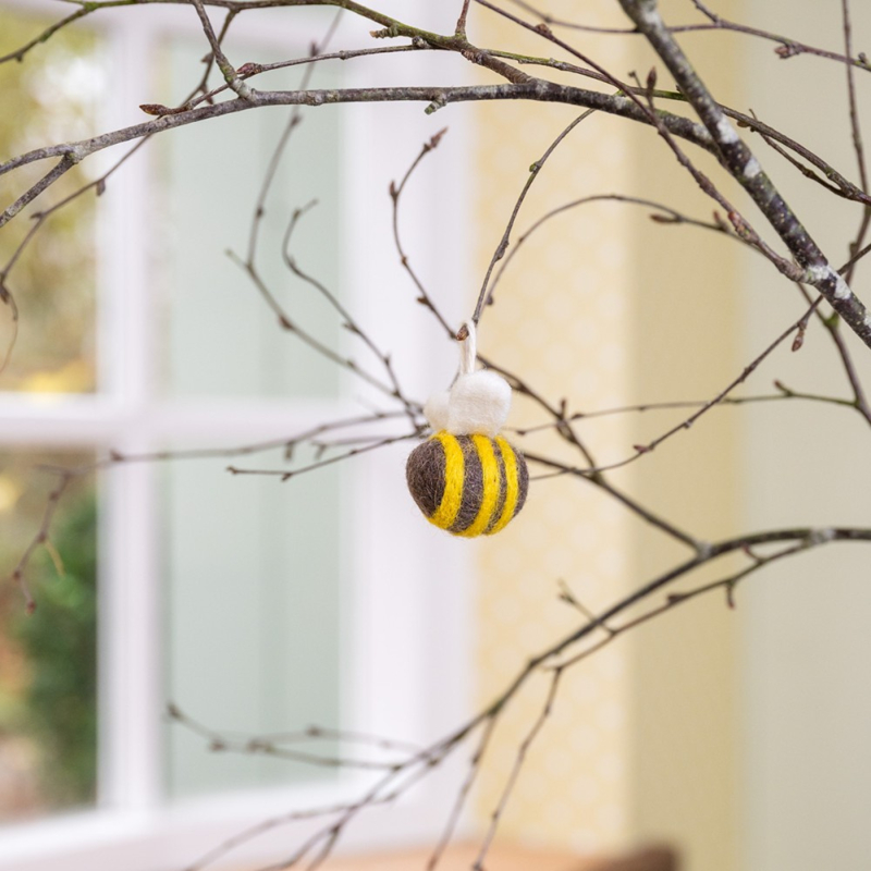 Vilten hanger - XL bijUit de collectie van Sjaal met verhaal: deze vilten bijenhanger. Leuk aan een mooi knopje of haakje, op een seizoenstafel, in een mooie tak of in de klas!