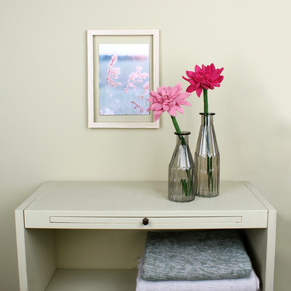 Deze gerbera komt uit de viltcollectie van Sjaal met verhaal. In de steel is metaaldraad verwerkt, waardoor je de bloem in de gewenste vorm kunt buigen. Een duurzame, tijdloze decoratie die het goed doet in elk interieur.