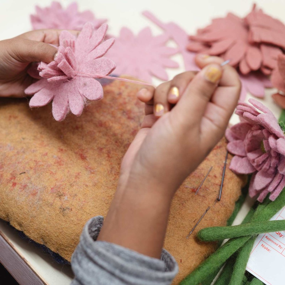 Herkomst: met de hand gevilt door vrouwen in Nepal.